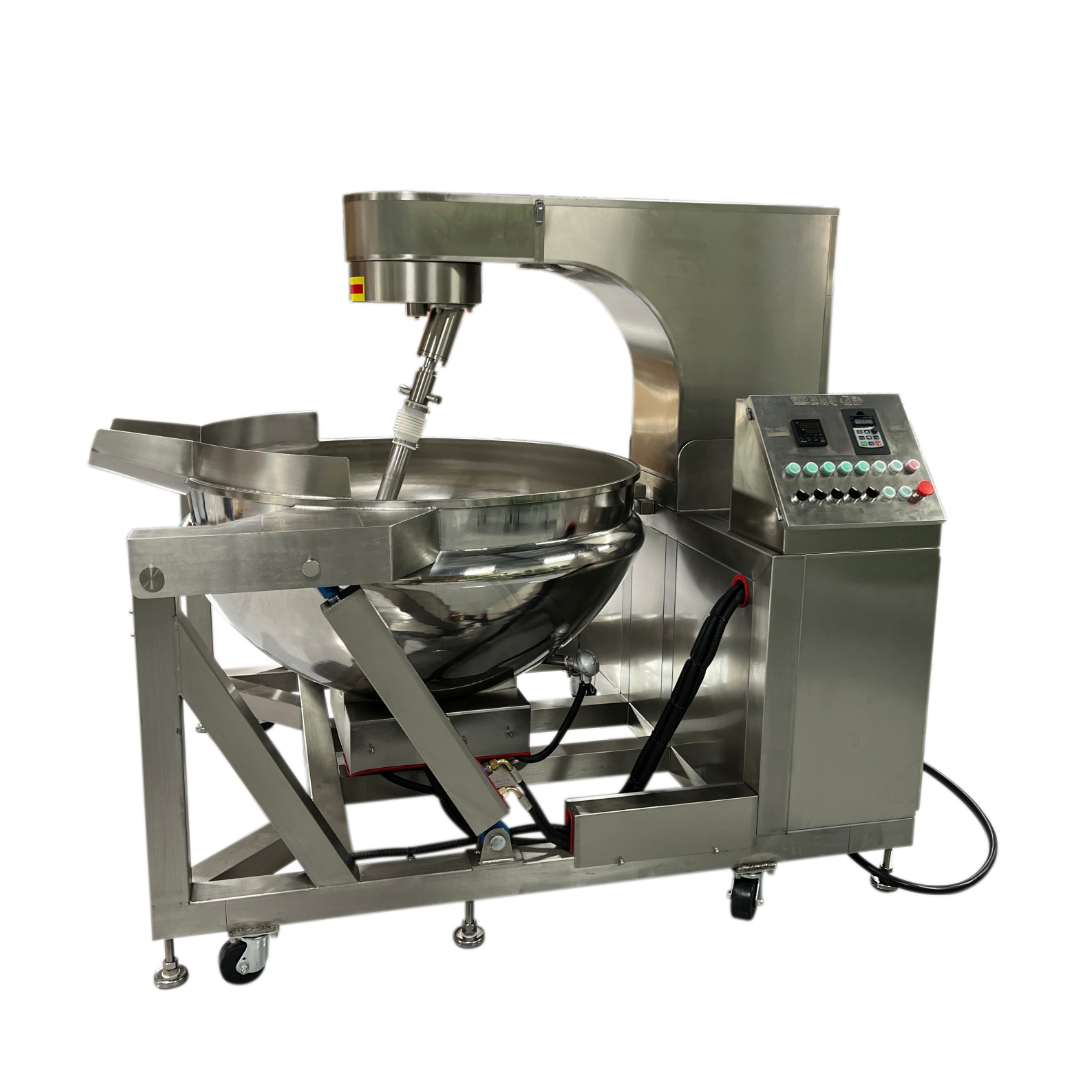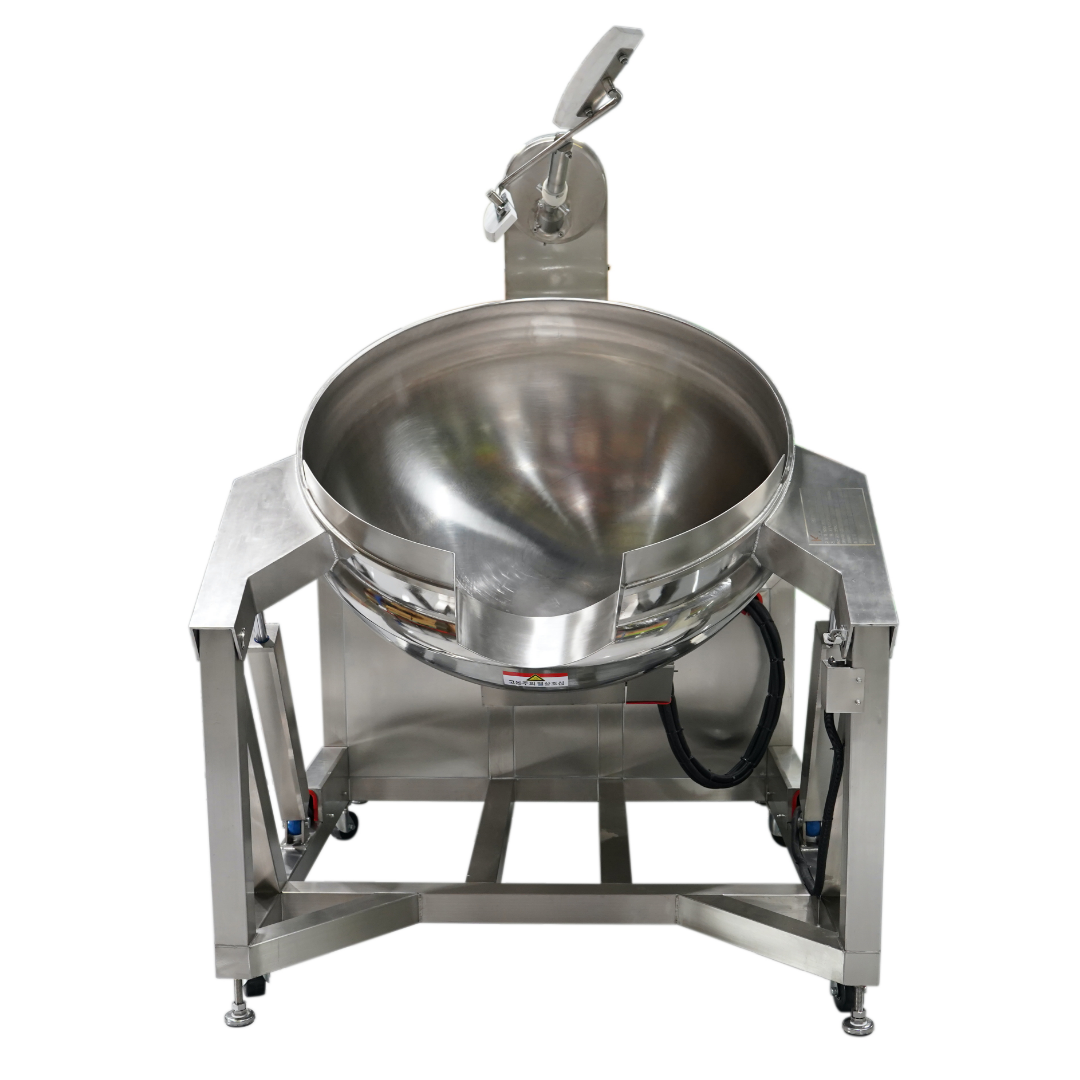 솥 내부는 열매체유를 이용해 안정적으로 가열되며, 외부 분리형 교반기(주걱)가 자동으로 재료를 고르게 섞어줍니다.