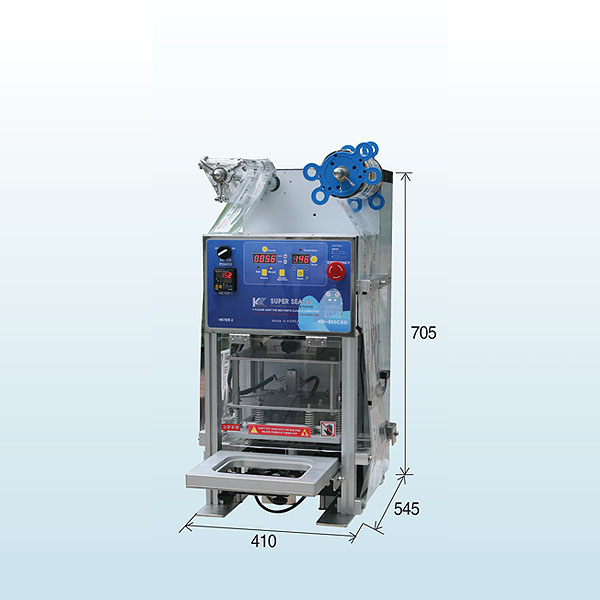 반자동 용기 포장기기로서 예전의 육중한 포장기와 달리 테이블 타입으로 제작 되었으며 작은 작업 공간에서도 편리하고 안전하며 빠른 포장에 적합한 기종이다.