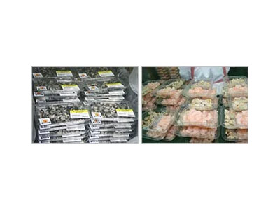 도시락, 두부, 야채, 갈비, 해산물, 공산품류, 나물 등 다양하다.