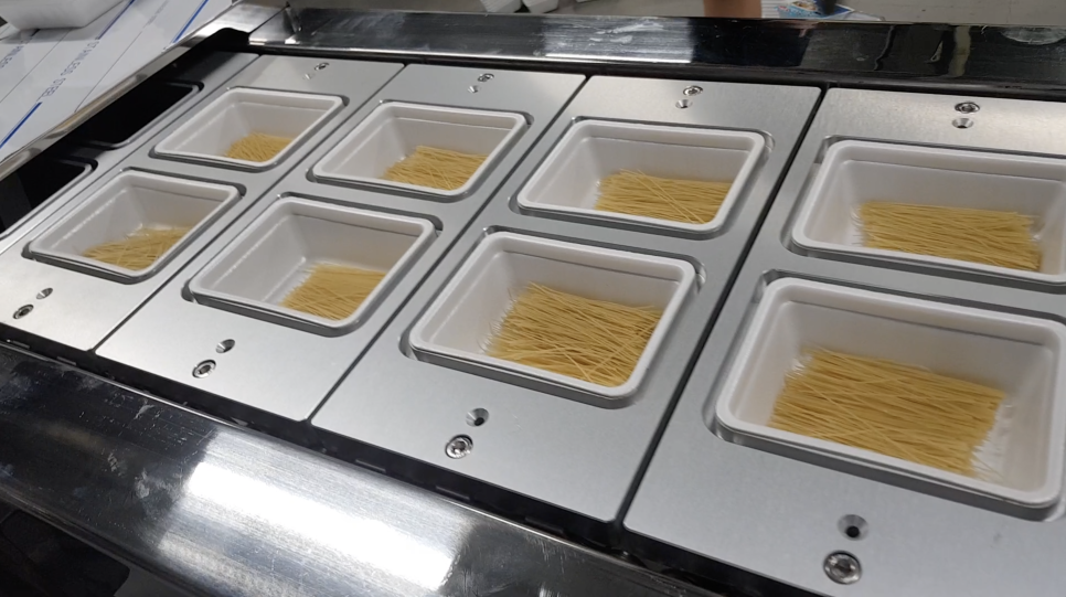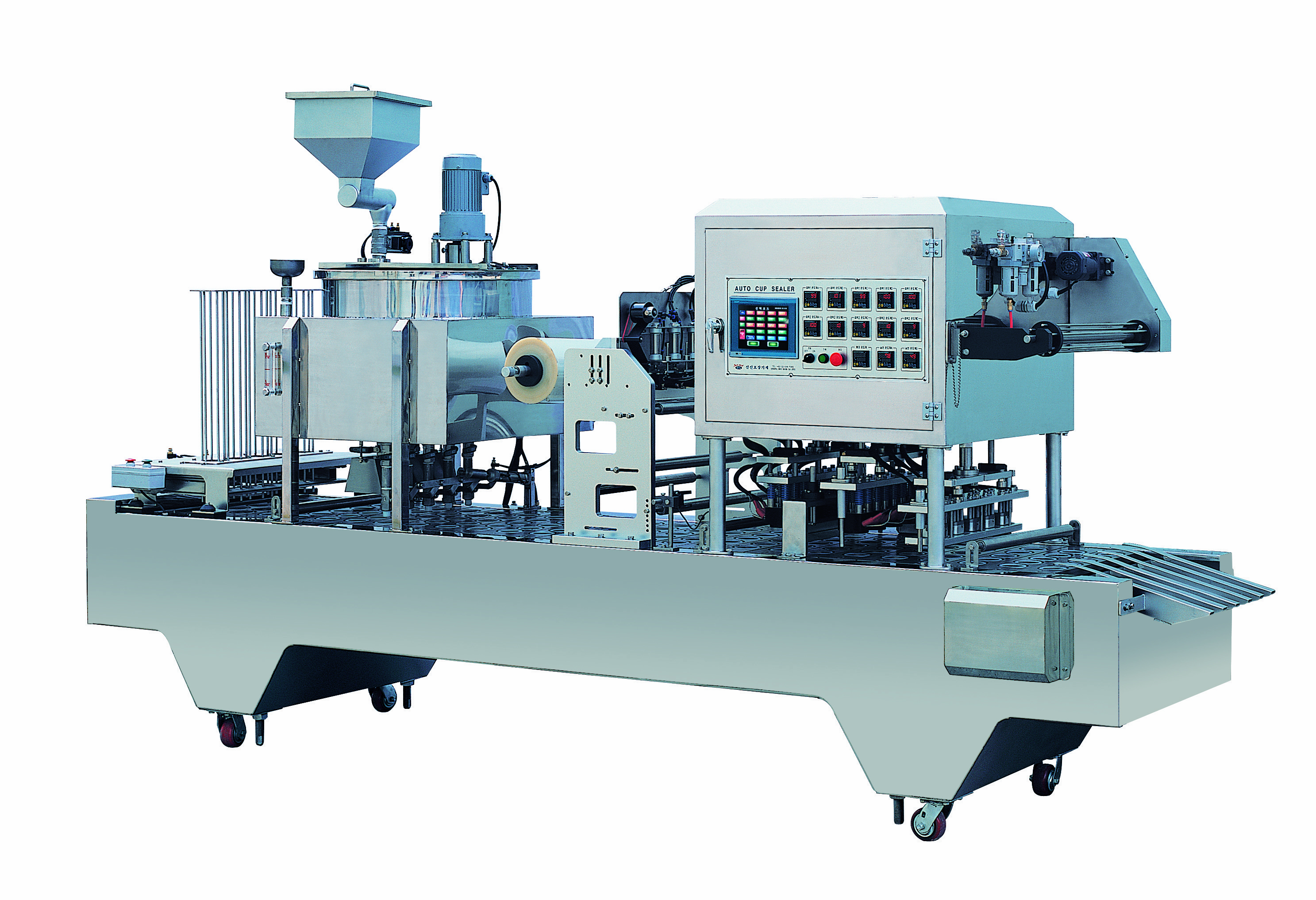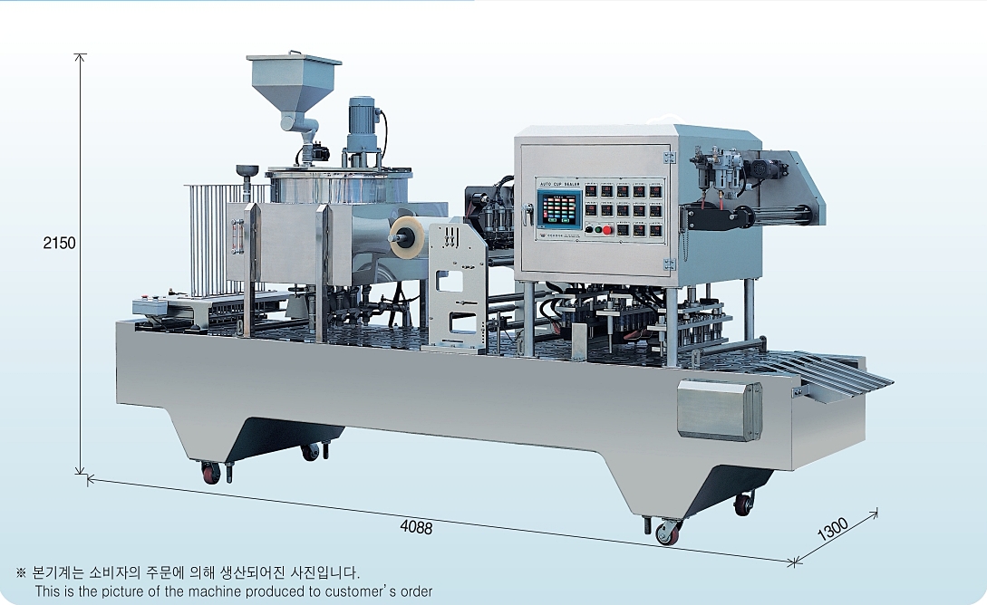 2회 실링후 컷팅되는 형식의 기계로, 용기의 크기와 상품 생산량에 따라 제작되는 기계입니다