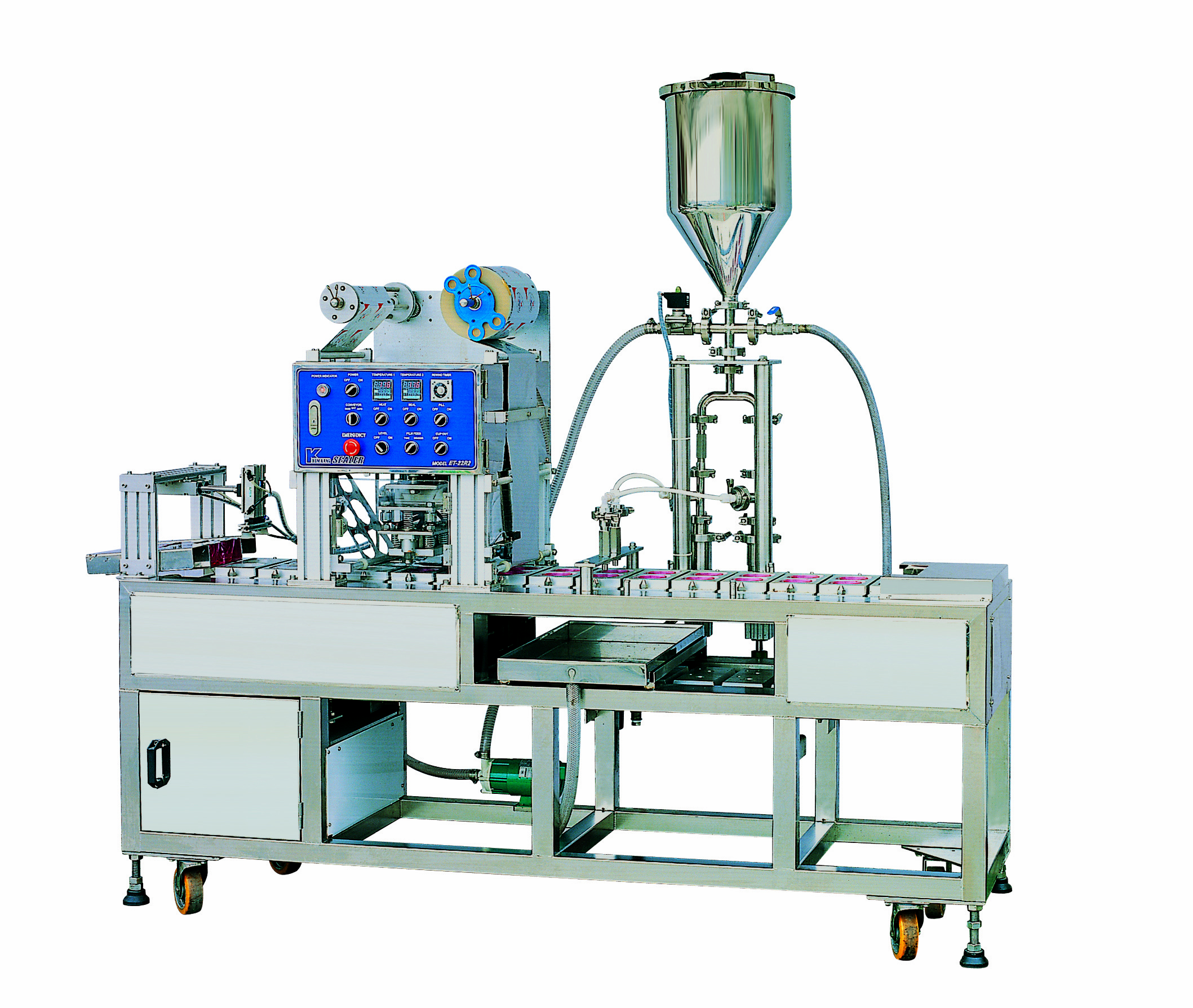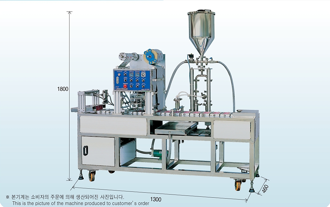 1회 실링과 동시에 컷팅되는 되는 방식의 기계로, 용기의 크기와 상품 생산량에 따라 제작되는 기계입니다