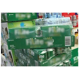 시중에서 흔히볼 수 있는 생수, 콜라, 사이다, 맥주 등의 낱개를 묶음으로 계수하여 두꺼운 PE필름으로 포장하는 기계입니다.