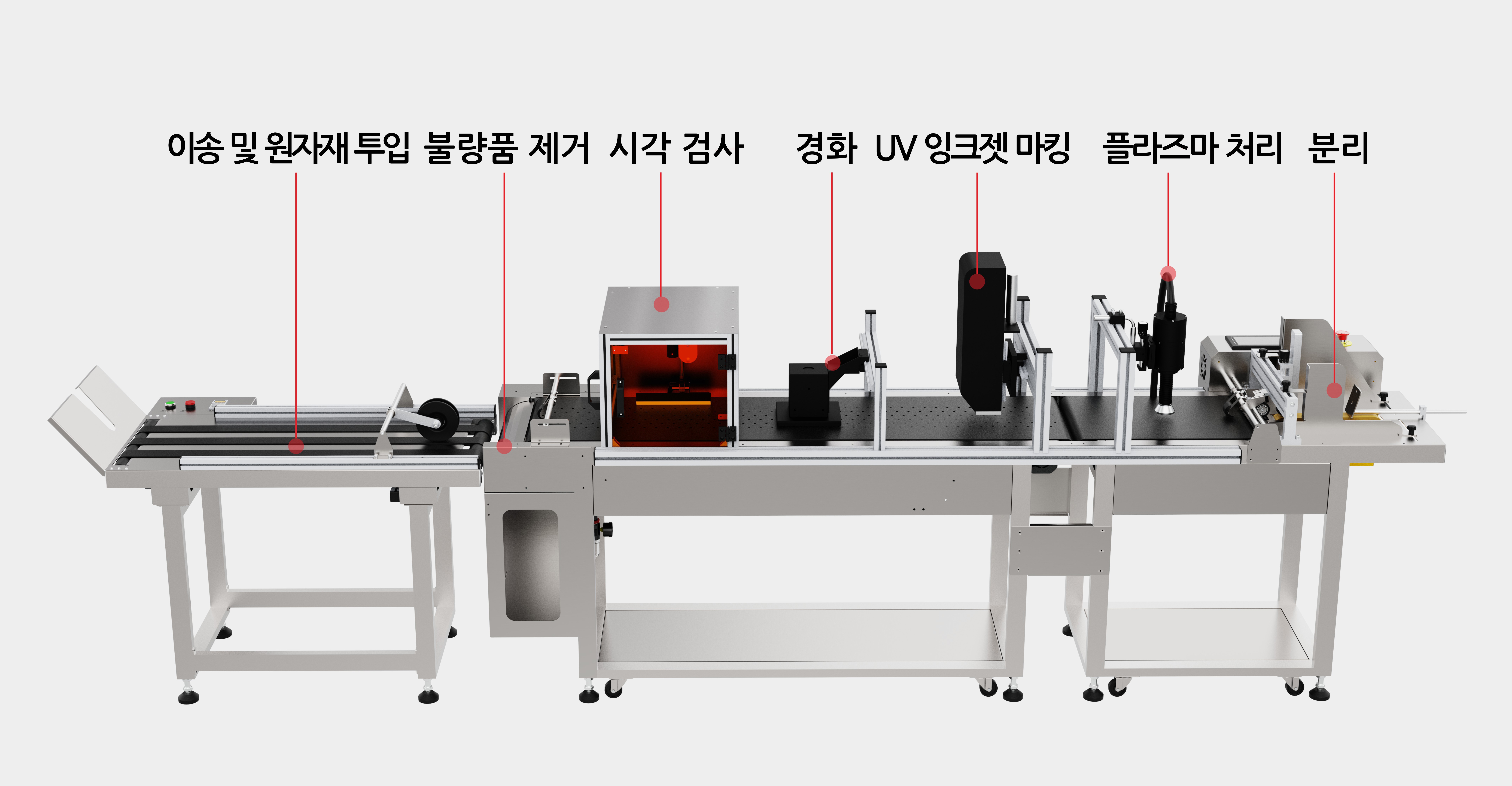 겹쳐진 제품을 한 장씩 분리하여 다음 공정으로 이송하며, 인력 부담을 줄이고 생산 효율성과 인쇄(코딩) 정확도를 크게 향상시킴.-