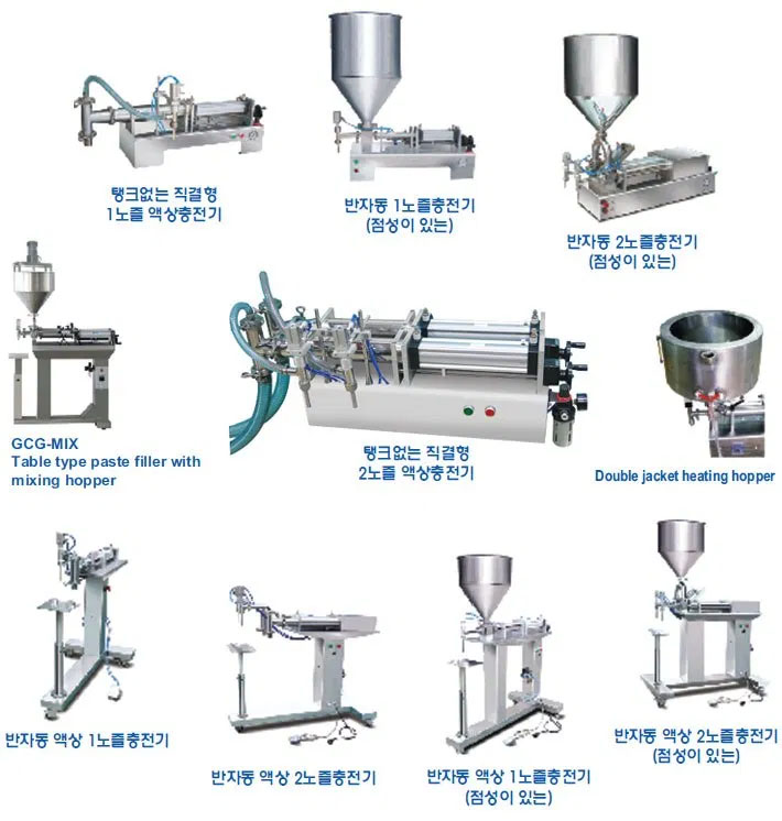 고점도의 액상 충진기로 보온재킷이 포함된 기계로 2노즐이지만 저렴한 가격에 구매하실 수 있는 상품입니다.