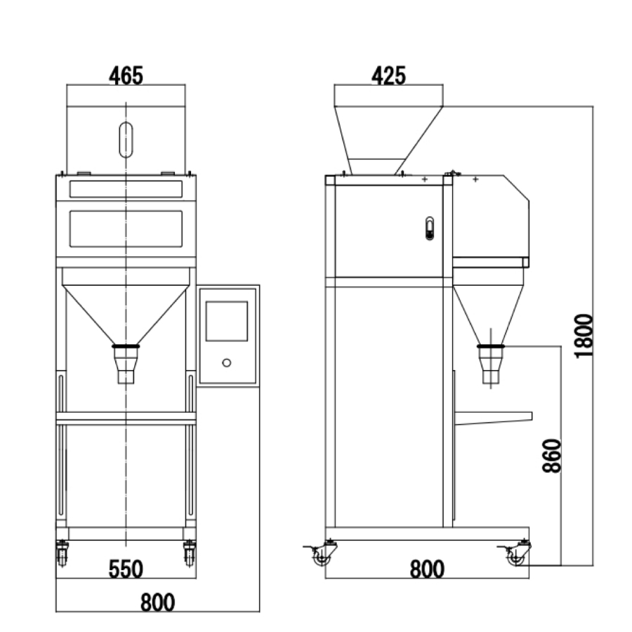 포장 중량 | 5g-5kg (재료 비중에 따라 결정됨) | ||
